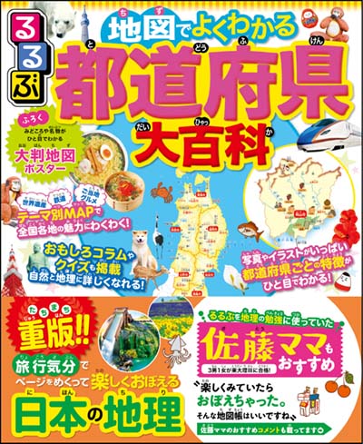 旅行ガイドブック「るるぶ」が楽しい学習地図帳に。写真やイラスト・図版を多く使い、都道府県のみどころや特産品はもちろん、ご当地グルメやクイズも掲載。旅行気分でページをめくりながら、楽しく地理が学べる。