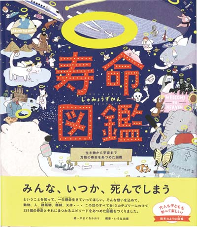 「みんな、いつか死んでしまう」ということを知って、一生懸命生きて欲しい。そんな想いを込めて、動物、人、建築物、天体など、この世のすべてを13カテゴリーにわけて、324個の寿命とそれにまつわるエピソードをあつめた図鑑。