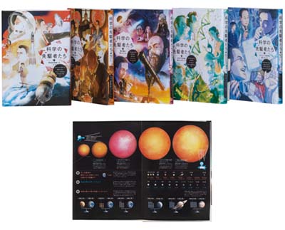 ロケット開発の歴史を描いた「宇宙を目指した人々」、感染症との戦いを描いた「病気と戦った人々」、天体の真実を究明した「星の謎に挑んだ人々」、DNAを解明した「生命の不思議に魅せられた人々」、「コンピュータ世界を作った人々」の、全5巻