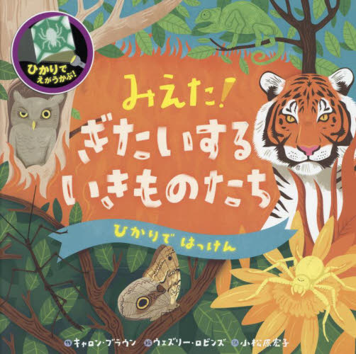 「ひかりではっけん」シリーズはQ&Aで展開する知識絵本です。でも、ただ答えを教えてくれんじゃないんです。部屋の灯りやスマートフォンのライトを使って、ページのうしろから光をあててみると……?シリーズ最新刊となる『みえた! ぎたいするいきものたち』では、ナナフシやベンガルトラ、カメレオンといった擬態する生きものたちを紹介します。