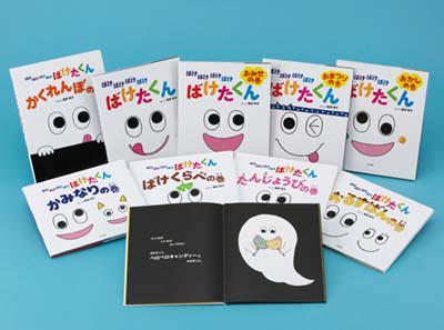 くいしんぼうのおばけ「ばけたくん」が、おいしそうなものを次々と食べて変身しちゃう大人気シリーズです。一昨年で「ばけたくん」は誕生10周年を迎えました。家族やおばけのお友達、ばけくらべ相手なども登場し、ますます面白くなっていきます。