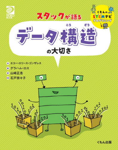 コマわりの絵本形式で、プログラミングやコンピューターの基礎知識を学ぶシリーズ。「スタック」をナビゲーターに、プログラムのデータを整理して保存する「データ構造」の大切さを学ぶ。代表的なデータ構造の例と使いかたについても、やさしく紹介する。